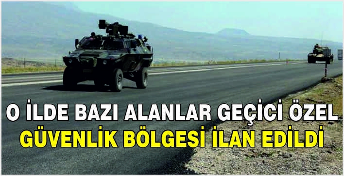 ALPARSLAN DİYARI- Valilikten yapılan açıklamada, milli güvenlik, kamu düzeni ve kamu esenliğinin sağlanması, suç işlenmesinin önlenmesi ve başkalarının hak ve özgürlüklerinin korunması amacıyla ilçenin Yaylak Mahallesi'nin Simetok, Gühermi ve Nedrehuş mezrası arasından kalan Şinak Tepesi'nin doğu bölgesi, 29 Eylül-13 Ekim arasında geçici özel güvenlik bölgesi ilan edildiği belirtildi.