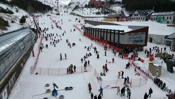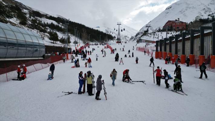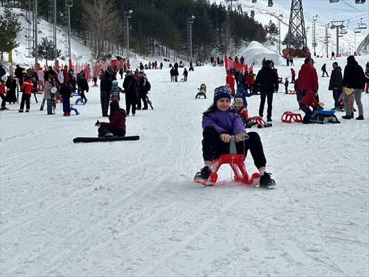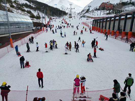 Yarıyıl tatilini Palandöken'de geçirmek isteyen aileler çocuklarıyla kızağa bindi, yerli ve yabancı turistler kayak ile snowboard yaparak eğlenceli vakit geçirdi.