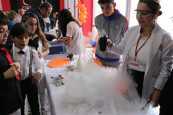 İlçedeki özel bir kolejde öğrencilerin robotik kodlama, el yakmayan deney, topraksız tarım, kabartmalardan yapılan eserler ile öğrencilerin tuval üzerinde akrilik boyayla yapılan çalışmalar sergilendi.