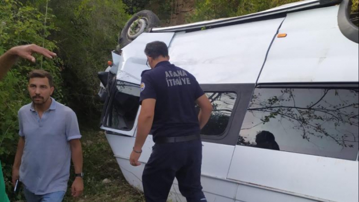 Kazada yaralanan şoför ile 8 öğrenci sağlık ekiplerince Karaisalı Devlet Hastanesi'ne kaldırıldı.