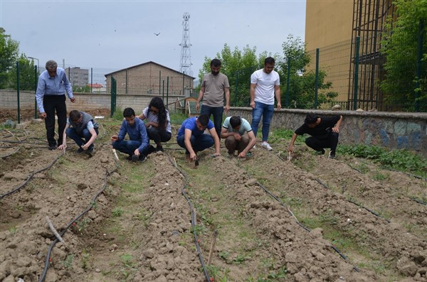 Öğrencilerde organik tarım bilincinin oluşması amacıyla çalışma başlatan öğretmenler, okulun bahçesindeki boş alana domates, salatalık, patlıcan ve biber fideleri ile soğan ekti.