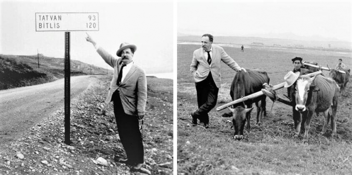 Yukarıdaki fotoğraf, Saroyan'ın Muş'ta bir tarlada çekilmiş bir kareyi gösteriyor. Fotoğrafta, Saroyan'ın köylülerle birlikte tarla işlerine katıldığı anı ölümsüzleştirilmiş. Bu ziyaret, Saroyan’ın kendi ailesinin kökenlerini ve Ermeni kültürünü keşfetme arzusu doğrultusunda gerçekleştirdiği birçok seyahatten sadece biriydi.