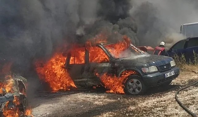 Ot yangını otoparka sıçrayınca araçlar yanarak hasar gördü