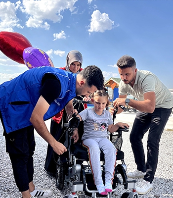 Dede ve anneannesi ile yaşayan Almira'ya tekerlekli sandalye almak üzere aralarında para toplayan Orduzu Gençlik Merkezi çalışanları, aldıkları akülü tekerlekli sandalyeyi Almira ve ailesine teslim etti.