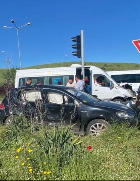 ALPASLAN DİYARI- Alınan bilgilere göre kaza, Bingöl-Genç karayolu havalimanı kavşağında meydana geldi. Sürücüleri ve plakaları öğrenilemeyen otomobil ile minibüs çarpıştı.