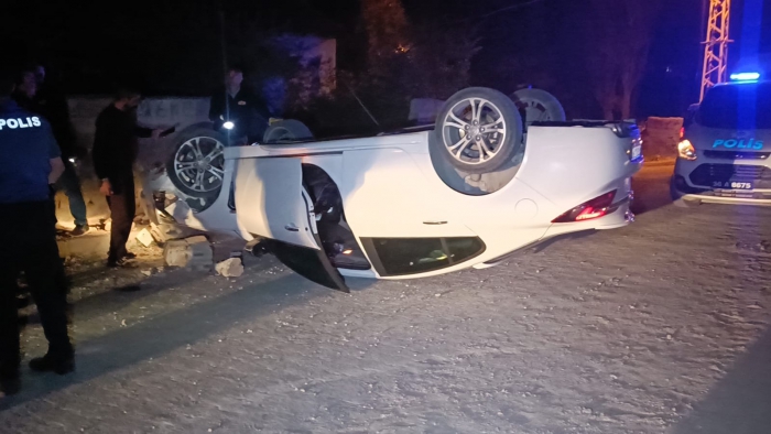 ALPARSLAN DİYARI- Kars'ın Kağızman ilçesinde Nebi Ç. yönetimindeki 36 AAY 453 plakalı otomobil, Narinkale Caddesi'nde kaldırımda yürüyen Nihat K'ya çarptıktan sonra devrildi.