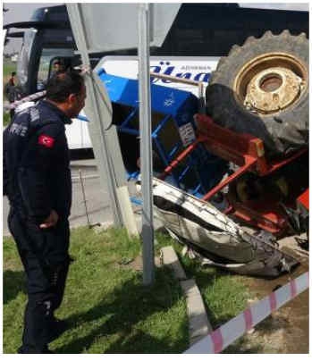ALPARSLAN DİYARI- Elde edilen bilgilere göre, Abuzer Çalış yönetimindeki 59 LL 513 plakalı traktör ile Müslüm Polat yönetimindeki 02 HZ 196 plakalı otomobil, Adıyaman-Gölbaşı karayolunun 5. kilometresinde çarpıştı. Çarpışma sonucunda traktör devrildi ve ters döndü.