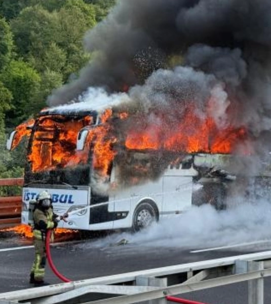 Durumu fark eden sürücü, otobüsü sağ şeride çekerek yolcuları tahliye etti.