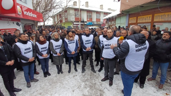 ALPARSLAN DİYARI- ‘Büyük Özgürlük Heyeti’ Malazgirt ilçesinde DEM Parti ilçe binası önünde konuşma yaptı.
