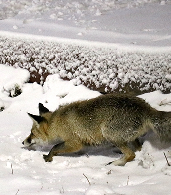 Kar yağışı sonrası yuvalarından çıkan tilkiler, dakikalarca kayak pistlerinde ve çevresinde koşturdu.