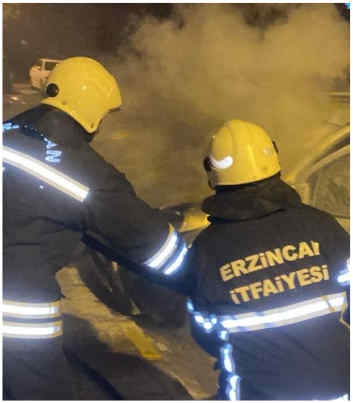 İtfaiye ekiplerinin müdahalesi ile söndürülen yangında araçta hasar meydana geldi.