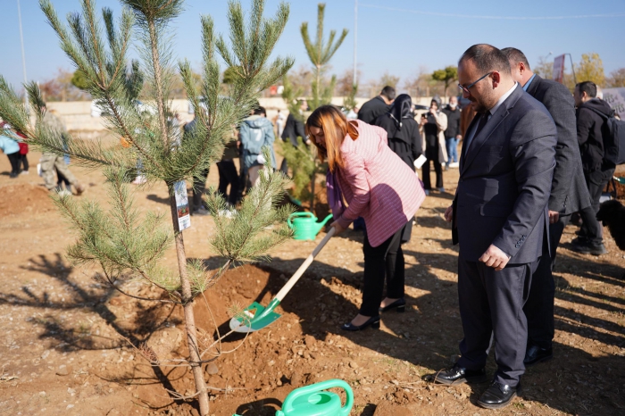 Rektör Prof. Dr. Mustafa Alican, çevre bilinci oluşturmanın önemine vurgu yaparak, "Bugün burada sadece ağaç dikmiyoruz doğa sevgisini, gelecek nesillere olan sorumluluğumuzu ve sürdürülebilir bir gelecek hedefimizi de bu topraklara ekiyoruz" dedi.
