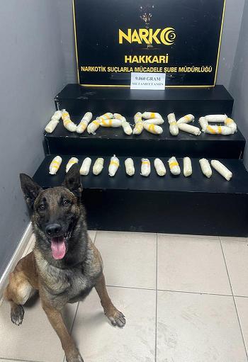 Bu kapsamda Depin uygulama noktasında durdurulan bir araçta narkotik dedektör köpeği "Rüzgar" ile arama yapıldı. Rüzğar ile yapılan aramada, 36 parça halinde 9 kilo 60 gram sentetik uyuşturucu ele geçirildi.