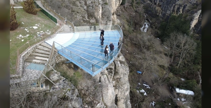Karabük'ün tarihi dokusuyla ünlü Safranbolu'da yer alan cam seyir terası, ziyaretçi akınına uğramaya devam ediyor. Yaklaşık üç asır önce Sadrazam İzzet Mehmet Paşa tarafından yaptırılan tarihi su kemerlerinin bulunduğu İncekaya Kanyonu'na inşa edilen bu modern yapı, 80 metre yükseklikten sunduğu eşsiz manzara ile adeta büyülüyor. 11 metre uzunluğa sahip ve 75 tonluk yüke dayanıklı olan cam teras, Safranbolu'nun turizmdeki en önemli simgelerinden biri haline gelmiş durumda.