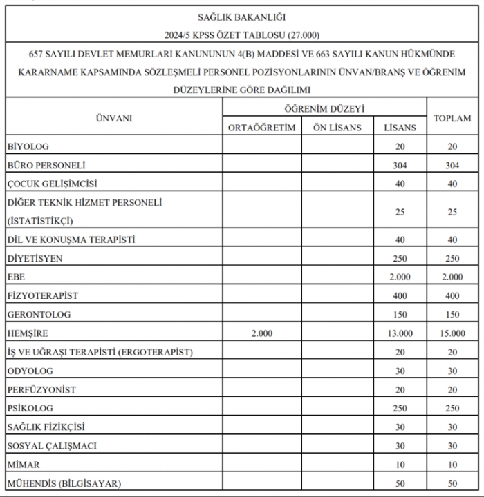 ALPARSLAN DİYARI-Resmi Gazete'de yayınlanan açıklamada, "Ortaöğretim, ön lisans ve lisans düzeylerinde tercih yapılabilecek sözleşmeli personel pozisyonlarının ve başvuru şartlarının bulunduğu KPSS-2024/5 Tercih Kılavuzu, ÖSYM’nin internet sitesi üzerinden yayınlanacaktır" bilgisi yer aldı.