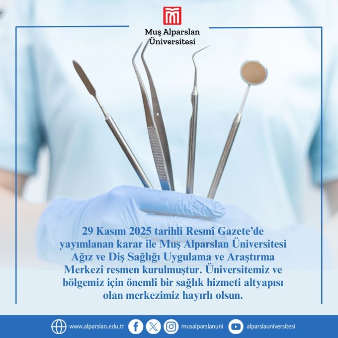 Muş Alparslan Üniversitesi bünyesinde kurulacak olan bu merkez, il ve çevre ilçeler için önemli bir sağlık altyapısı oluşturacak. Bölge halkının ağız ve diş sağlığı hizmetlerine erişimini artıracak merkez, aynı zamanda koruyucu sağlık uygulamalarına yönelik bilinçlendirme faaliyetleri de yürütecek.