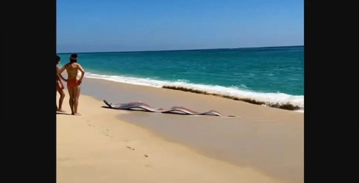 Meksika'nın Cabo San Lucas sahilinde tatil yapan iki Amerikalı turist, nadir görülen ve "kıyamet balığı" olarak bilinen iki dev kürek balığına sahne oldu. Bu olay, balıkların karaya vurmasının yaklaşan felaketlerin habercisi olduğuna dair eski efsaneleri yeniden gündeme getirdi.