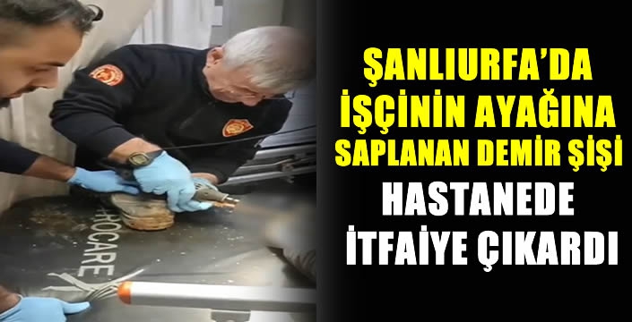 Hastaneye gerekli ekipmanıyla gelen itfaiye ekibi, yaklaşık yarım saatlik çalışmanın ardından şişi işçinin ayağından çıkardı.