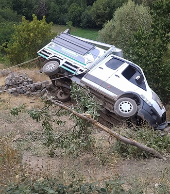 ALPARSLAN DİYARI-Güvenlik korucularının bulunduğu 06 EE 5968 plakalı kamyonet, Ağaçdibi köyü yolunda şarampole devrildi.