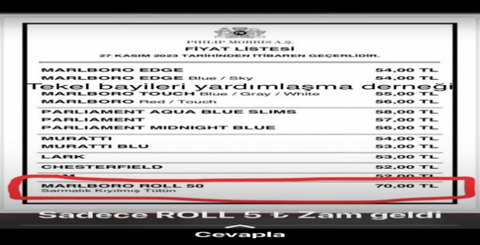 Philip Morris sigara grubundan Marlboro Roll 50 tütün fiyatına yüzde 7.69 zam geldi.