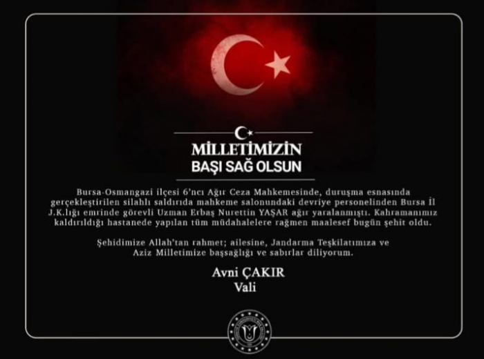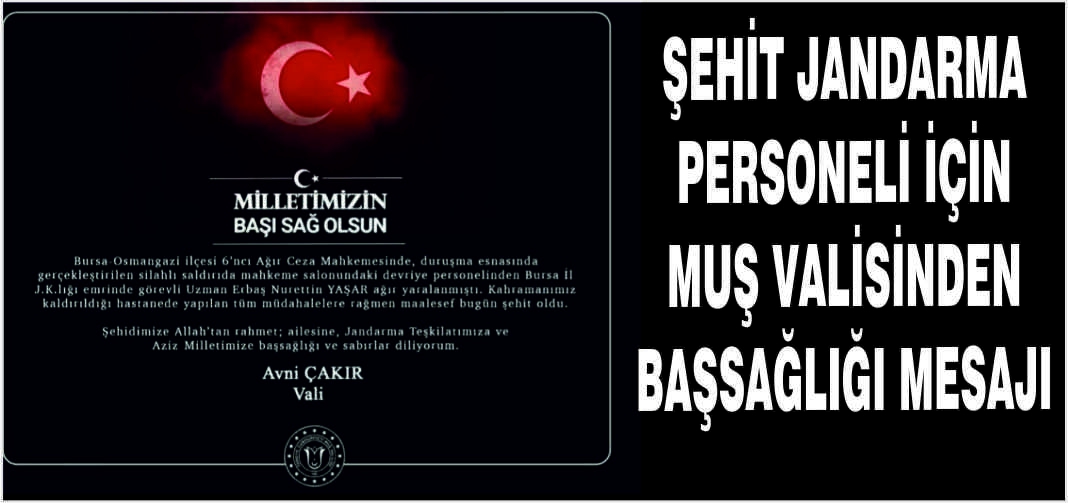 Muş Valisi Avni Çakır'ın yayımladığı mesaj, başta şehidin ailesi olmak üzere tüm Jandarma Teşkilatı ve ülke genelinde büyük yankı buldu.