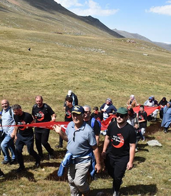 Merkeze bağlı 3 bin 82 rakımlı Deveboynu Yaylası'nda bir araya gelen Gençcelep'in yakınları ve vatandaşlar, Türk bayrağıyla yaklaşık 5 kilometre yürüyerek Yurt önü mevkisine geldi.