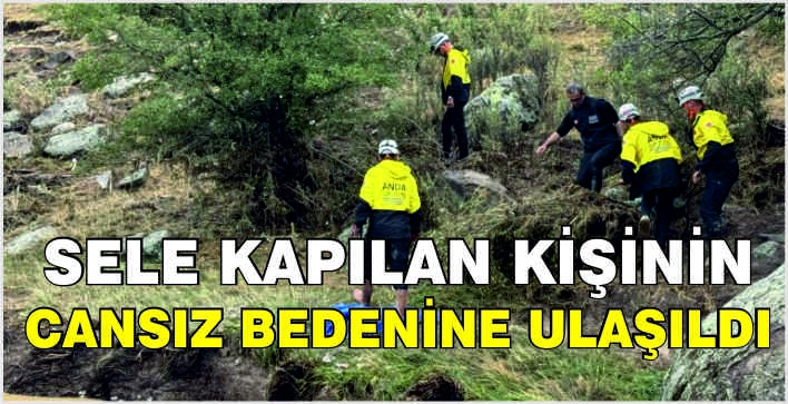 Araç iş makinesi ile bulunduğu yerden çıkarılırken, sel sularına kapıldığı değerlendirilen Muhittin Saraç'ın cansız bedenine aracından yaklaşık 10 kilometre uzaklıktaki evin bahçesinde ulaşıldı.