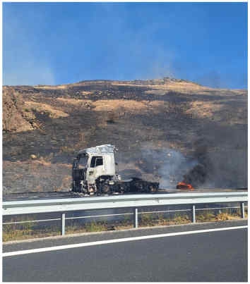 ALPARSLAN DİYARI-Ramazan G. idaresindeki 34 DIA 279 plaka tır, Erzincan-Erzurum kara yolunda seyrederken Yaylacık köyü mevkisinde bilinmeyen bir nedenle yanmaya başladı.