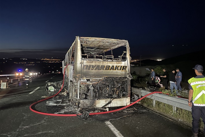 Yangın sonucu otobüs kullanılamaz hale gelirken, yolcular başka otobüse nakledildi.