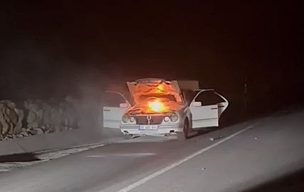Bingöl'ün Karlıova ilçesinde seyir halindeyken motor kısmı alev alan otomobil kullanılamaz hale geldi.