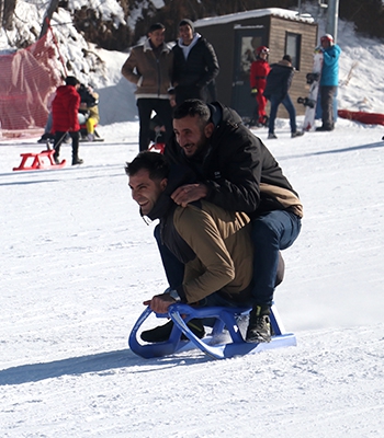 14 yaşındaki Sıraç Zengin de Tekirdağ'dan gelen arkadaşıyla kızakla kaydıklarını, sezon boyunca her zaman geleceğini belirtti.