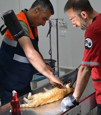 "Bize teslim edilen yaralı kediye ilk müdahaleyi yaparak Tatvan Belediyesi Sokak Hayvanları Kısırlaştırma ve Rehabilitasyon Merkezi'nde ameliyata aldık. Ön iki patisi kopmuş durumdaki kedinin sol ön ayağının tamamını almak durumunda kaldık. Sağ ön ayağın tedavisini yaptık ama ileriki süreçte proteze ihtiyaç olacak. Tedavisi bittiğinde bu kedimizin sokakta yaşaması mümkün olmayacak. Şu an hayati tehlikesi yok."