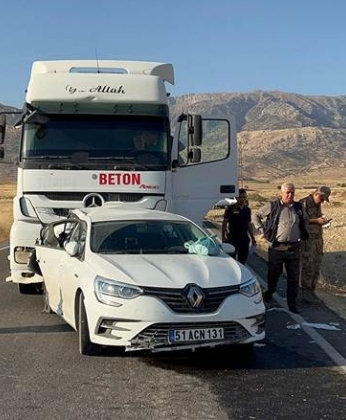 ALPASLAN DİYARI-Alkış'ın kullandığı 73 AAG 620 plakalı TIR, Yolağzı (Girê Kundan) köyü dördüncü kilometresinde önündeki Cidu Kirun (76) idaresindeki 51 ACN 131 plakalı otomobile çarptı.