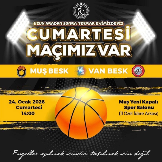 Yeniden evinde oynamanın motivasyonunu yaşayan Muş Bedensel Engelliler Basketbol Takımı, taraftarının desteğiyle parkede daha güçlü olmayı hedefliyor. Bu anlamlı buluşma, sporun birleştirici gücünü bir kez daha ortaya koyarken, engelsiz bir dayanışma için tribünlerde buluşma çağrısı yapıyor.