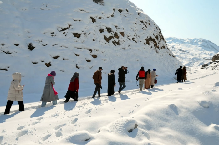 "Eğitim alan kursiyerle, özellikle kentin tarihi ve kültürel yerlerini, doğal güzellikleri ve yaşamını konu alan fotoğraflar çekerek, ilin tanıtımına katkıda bulunmak istiyoruz. Bugün Kale Mahallesi'ndeki tarih mekanları ve camileri gezdik. Kentte soğuk hava hakim. Hem doğu yürüyüşü yaptık hem de buz tutan şelaleleri fotoğrafladık."