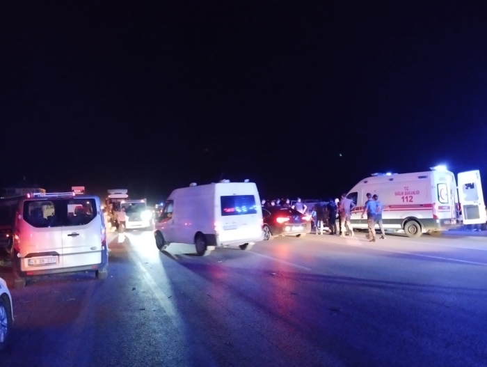 Kazaya, 44 ADC 697, 49 T 0101, 33 B 1843, 46 VG 570, 06 BDD 685 ve 46 BG 570 plakalı otomobiller karıştı.