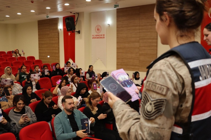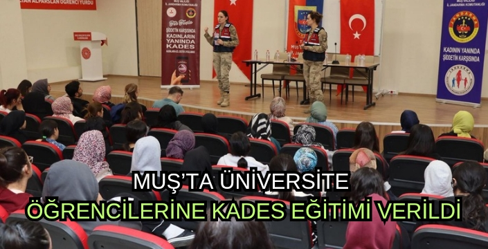 ALPARSLAN DİYARI-Bu kapsamda, Merkez İlçe Jandarma Komutanlığı’na bağlı Üniversite Jandarma Karakol Komutanlığı sorumluluk alanında bulunan Sultan Alparslan Kız Öğrenci Yurdu ziyaret edilerek, yurtta kalan 160 üniversite öğrencisine “6284 Sayılı Kanun” ve KADES (Kadın Destek Uygulaması) hakkında bilgilendirme eğitimi verildi.