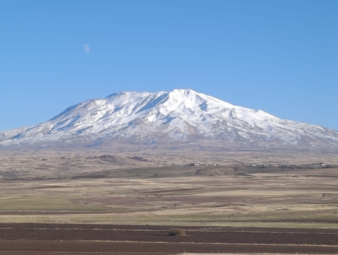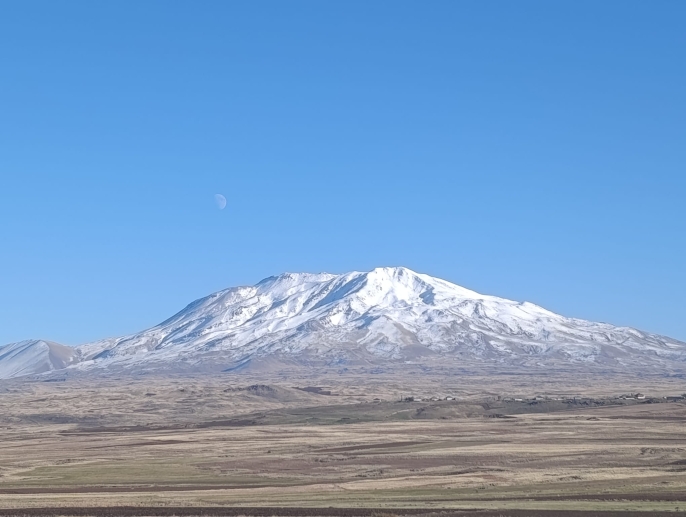 ALPARSLAN DİYARI – Malazgirt’in yüksek kesimlerinden rahatlıkla izlenebilen karla kaplı Süphan, ilçede hem doğaseverlerin hem de fotoğraf meraklılarının ilgi odağı haline geldi. Sabah erken saatlerde beyaz örtüyle kaplanan dağ, bölge halkı tarafından “kış geliyor” şeklinde yorumlandı.