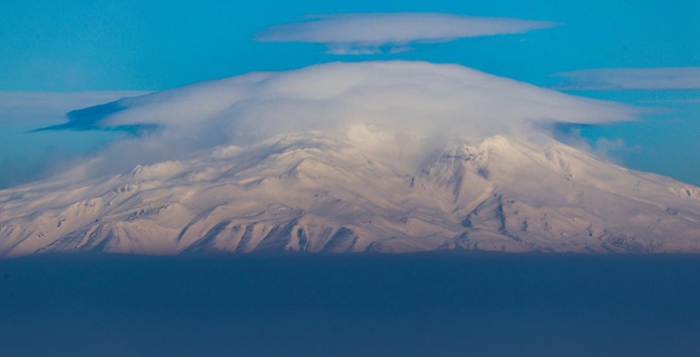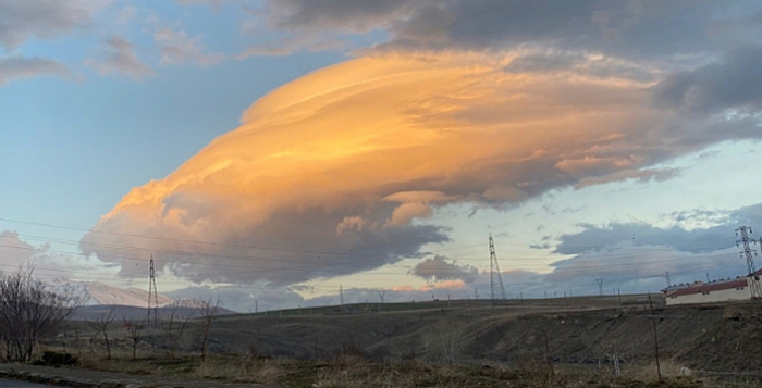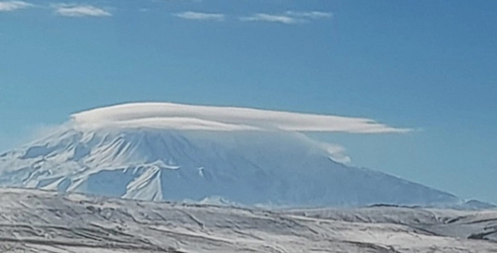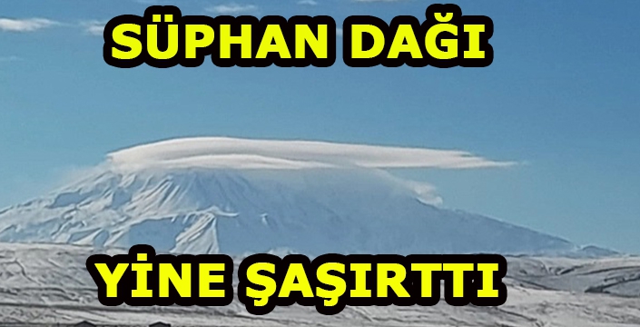 ALPARSLAN DİYARI-Malazgirt ilçe sınırlarında yer alan Süphan Dağı'nın zirvesinde mercek bulutu görüldü. 4.058 metre yüksekliğine sahip Süphan Dağı'nın zirvesinde mercek bulutu görüldü. Süphan Dağı'nın zirvesinde " şapka" şeklinde oluşan mercek bulutu görsel şölen oluşturdu. Görüntüyü gören vatandaşlar cep telefonlarıyla çektiler.