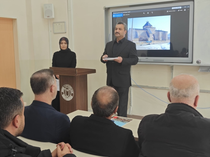 ALPARSLAN DİYARI- Etkinliğe konuk olarak katılan eğitimci, araştırmacı ve ressam Turhan Sur, Muş’un genel tarihi, kültürel birikimi ve sanat alanındaki zenginliğini öğrencilerle paylaştı.