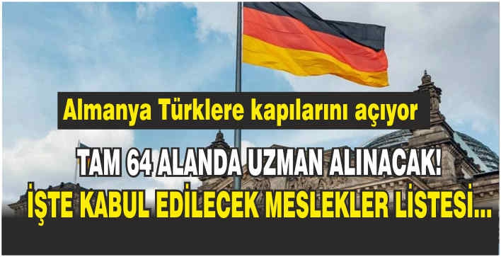 Almanya'nın 64 alanda alım yapacağı meslekler ise merak edildi. “İş Vizesi- D vize” vererek yasal yollardan Almanya'ya götüreceği gruplar listesi...
