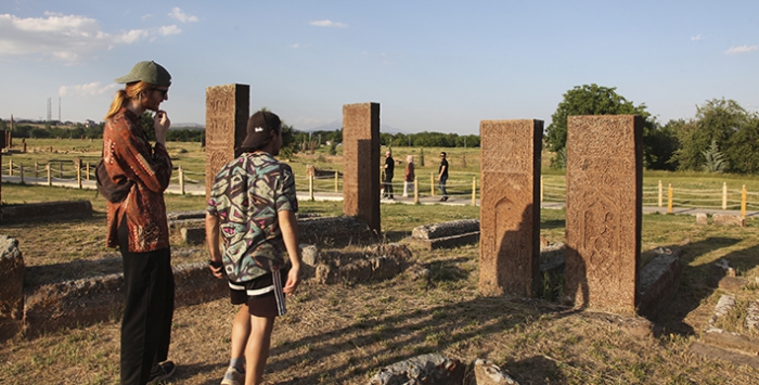 Bayram tatili dolayısıyla "Sakin Şehir" unvanına sahip Ahlat'a gelen yerli ve yabancı ziyaretçiler, Selçuklu Meydan Mezarlığını, tarihi kümbetleri ve doğal güzellikleri geziyor.