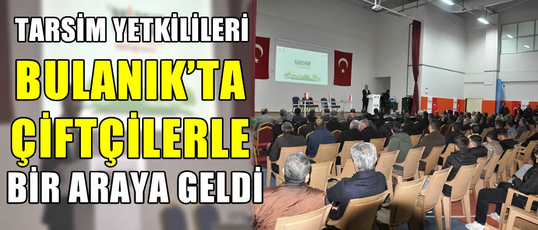 Muş'un Bulanık ilçesinde çiftçiler, Tarım Sigortaları Havuzu (TARSİM) konusunda bilgilendirildi. Bulanık Gençlik Merkezi'nde düzenlenen toplantıda, TARSİM Erzurum Bölge Müdürü Erkan Gür, katılımcılara, devlet destekli tarım sigortaları sisteminin işleyişi, genel şartları, teknik tarifesi ve talimatları ile poliçe son kabul tarihleri hakkında bilgi verdi.