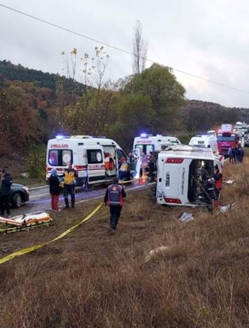 İtfaiye ve sağlık ekiplerince otobüsten çıkarılan 20 yaralı ambulanslarla çevredeki hastanelere kaldırıldı.
