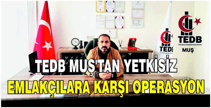 TEDB Muş İl Başkanı Erkan Kalır, konuya ilişkin yaptığı açıklamada, “Muş’ta son üç ayda 45’ten fazla kayıt dışı emlakçı tespit ettik. Bunların 27’si sosyal medya üzerinden sahte ilan paylaşarak vatandaşları mağdur etmeye çalışıyordu. Yetkisiz emlakçılar hem sektöre hem de vatandaşlara zarar veriyor. Bundan sonra TEDB olarak Ticaret Müdürlüğü ile koordineli şekilde düzenli denetimler gerçekleştireceğiz. Kimse mağdur olmasın diye, güvenilir ve lisanslı emlakçılarla çalışmanızı öneriyoruz.” ifadelerini kullandı.