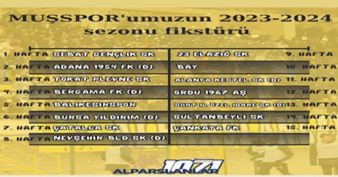 ALPARSLAN DİYARI- TFF 2. Lig'de yeni sezon, 26-27 Ağustos tarihlerinde oynanacak maçlarla başlayacak. Ligin ilk yarısı 23-24 Aralık tarihlerinde yapılacak 19. hafta müsabakalarıyla tamamlanacak. 13-14 Ocak 2024'te oynanacak 20. hafta müsabakaları ile ikinci yarının başlayacağı ligde normal sezon ise 4 Mayıs 2024'te son bulacak. TFF 2. Lig'de 23. ve 29. hafta müsabakaları hafta içi oynanacak.