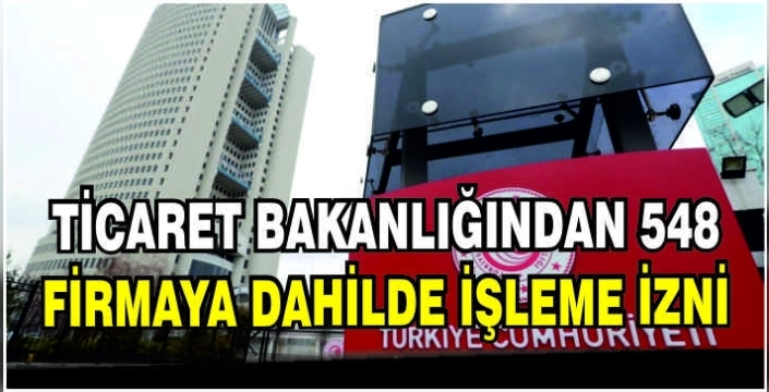 Buna göre, geçen ay 548 firmaya dahilde işleme izin belgesi, 19 firmaya yurt içi satış ve teslim belgesi ve 4 firmaya hariçte işleme izin belgesi verildi.