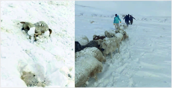 Ahmet Karakaya'nın otlattığı 168 küçükbaş hayvandan 65'i şiddetli soğuk ve tipi nedeniyle telef olurken, diğerleri mahalle sakinlerinin yardımıyla kurtarılarak sahiplerine teslim edildi.