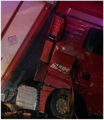 Kaza etkisiyle savrulan TIR bariyerlere çarparak durabildi. Çarpma sonucunda TIR’da yüklü olan dorse devrildi.