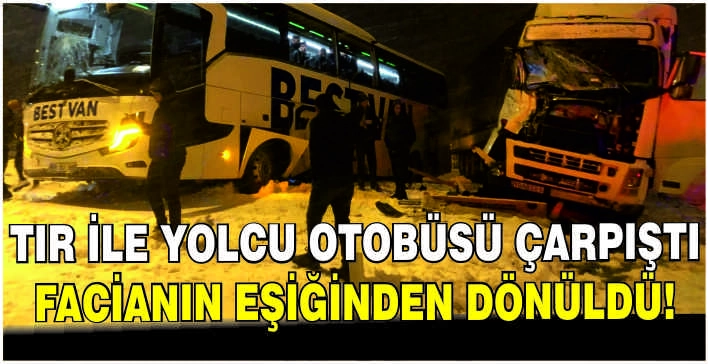 ALPARSLAN DİYARI- İran uyruklu J.G'nin kullandığı 10 AB 585 plakalı tır, Bitlis-Tatvan karayolunun Üçyol mevkiinde, E.Ç. idaresindeki 65 BJ 359 plakalı Bestvan firmasına ait yolcu otobüsüne çarptı.